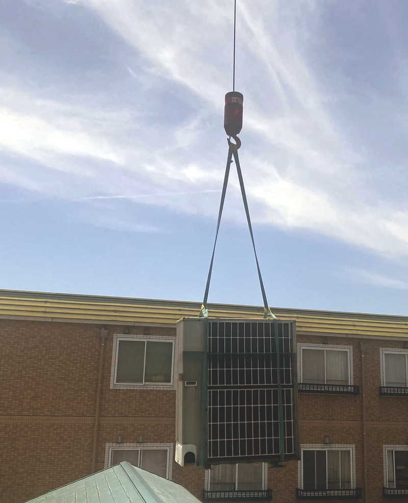クレーンによる室外機の搬入