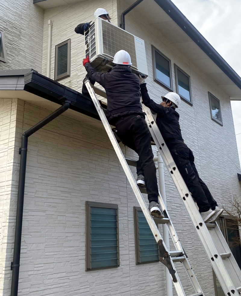 室外機の上げ下ろし設置